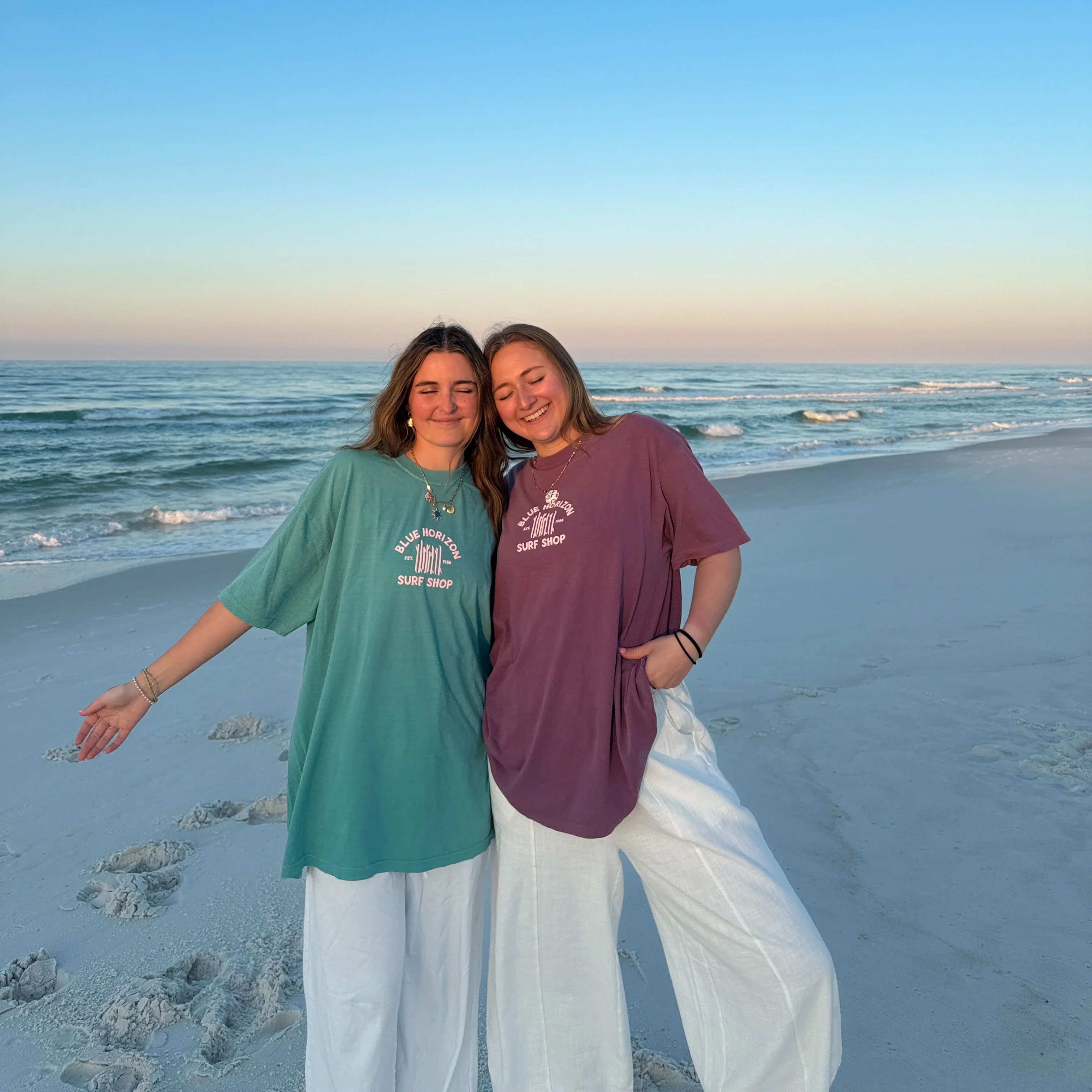 The pink puff-print ink gives this tee an elevated look and features the classic Blue Horizon Surf Shop logo. Perfect for all of your summer adventures!